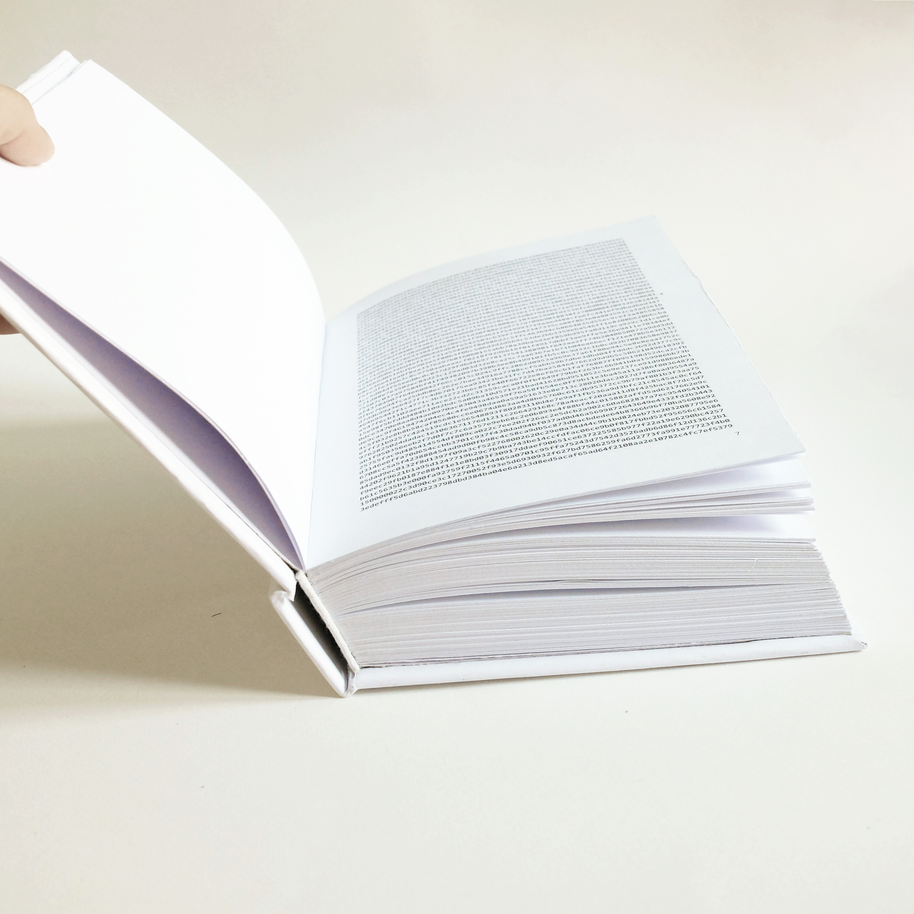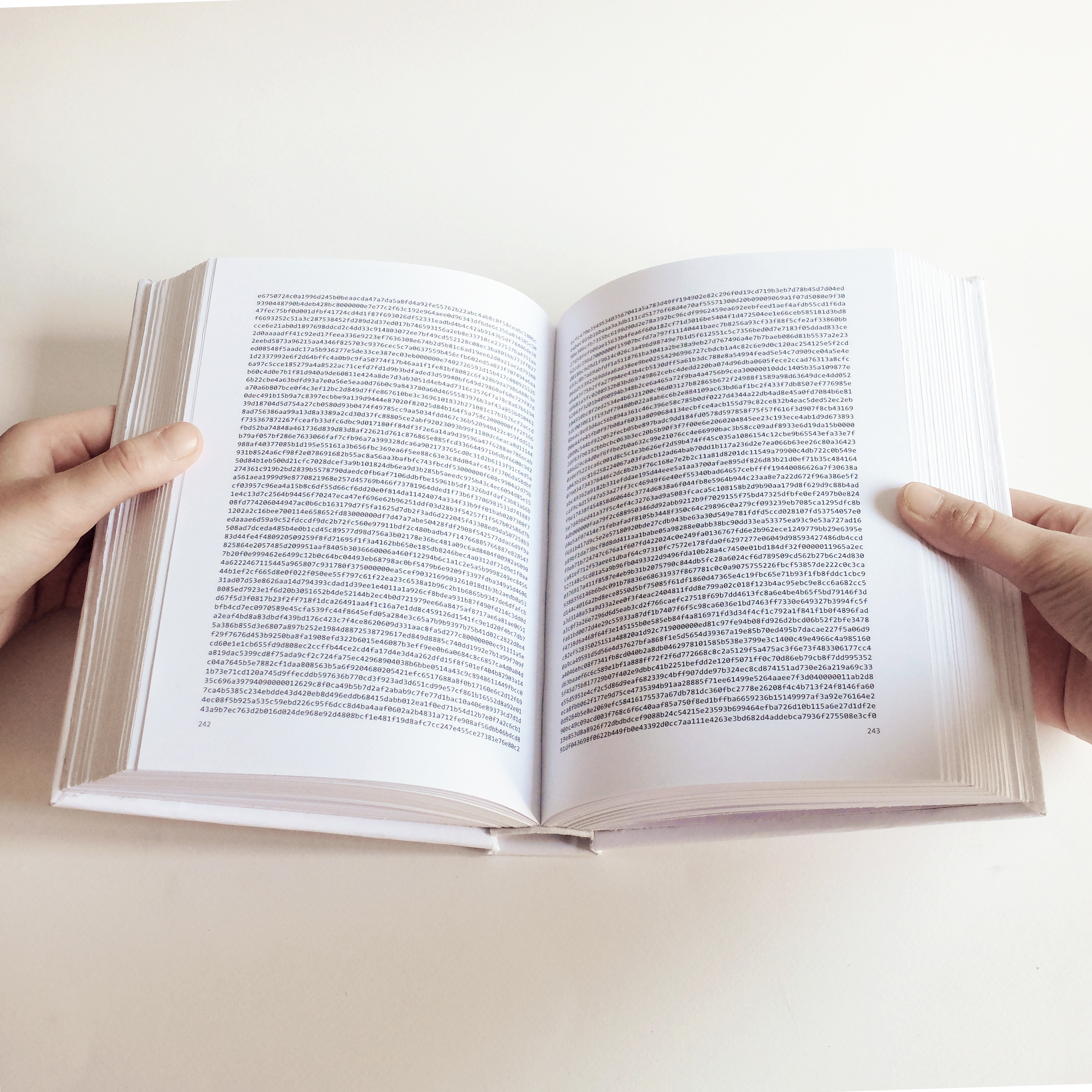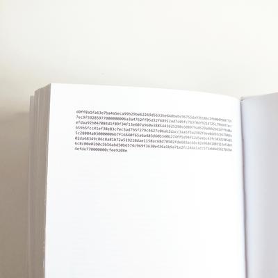 Signal Project is a 512-page book, bound by hand, containing the encrypted archive (ciphertext) of a 3 month conversation with a former lover on the Signal Private Messenger app.
