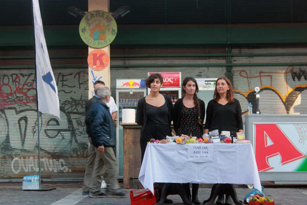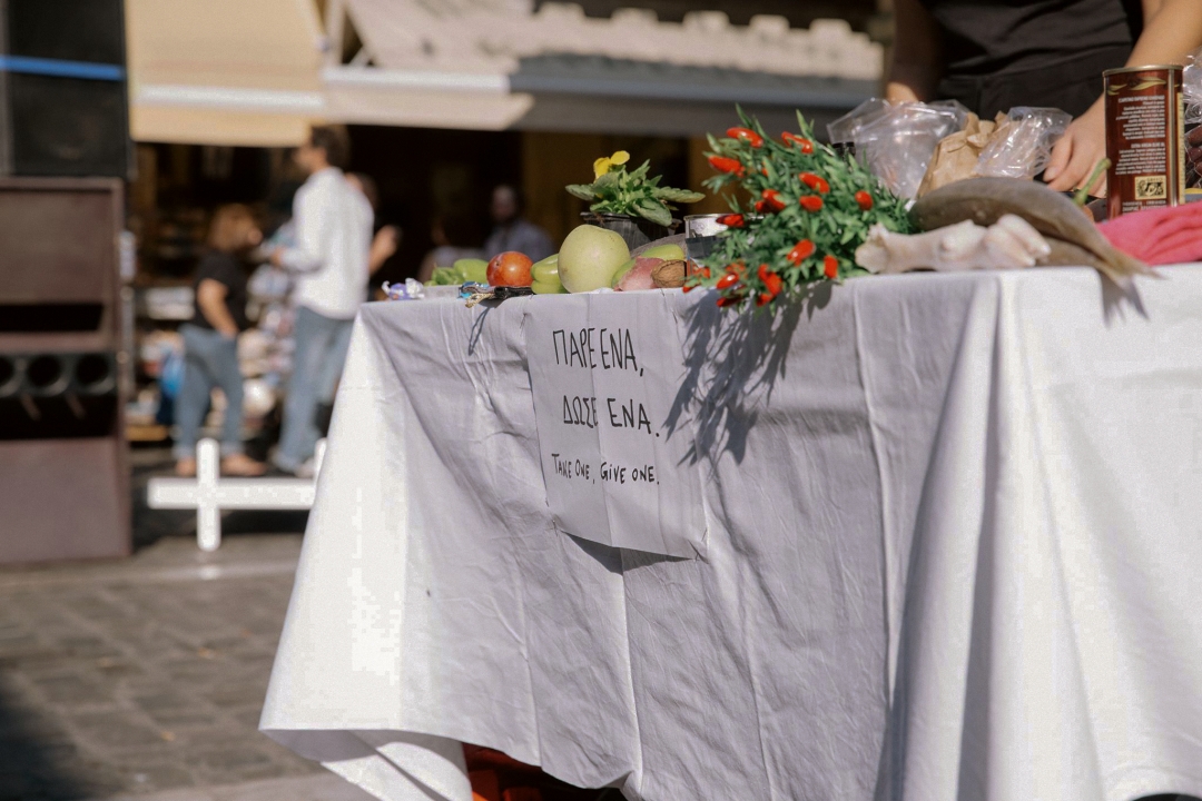We arranged our collected goods on our table and begun to barter-trade them with passers-by. Everyone could take anything they